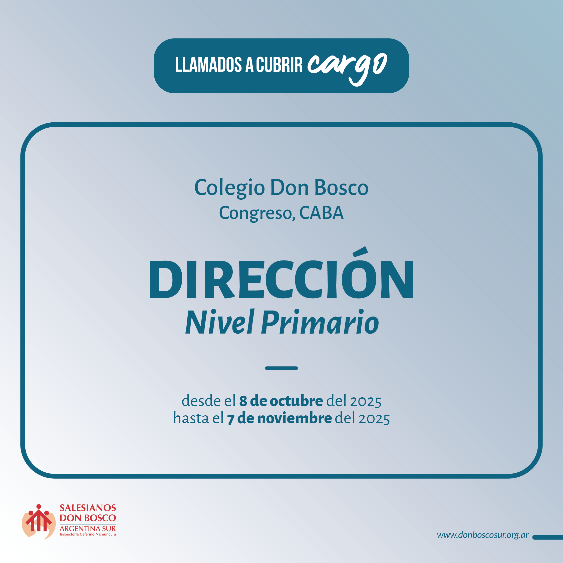 Del 8 de octubre al 7 de noviembre del 2025 está abierto el proceso de convocatoria y selección de aspirantes para la cobertura del cargo de Dirección de Nivel Primario del Colegio Don Bosco del barrio de Congreso, CABA.