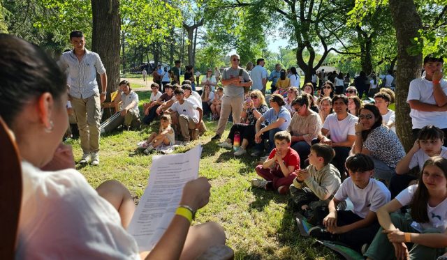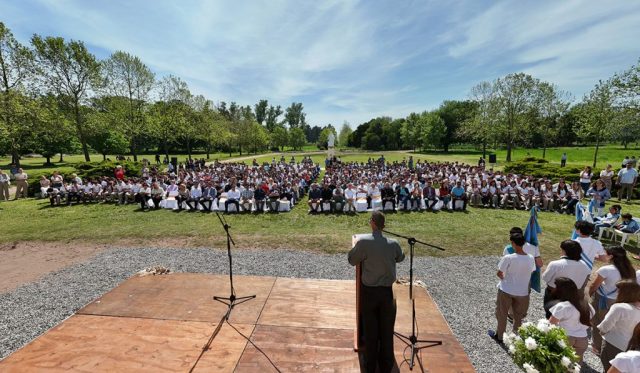 La celebración estuvo organizada por dos momentos principales, desde las 10 hs se llevó adelante el acto protocolar por el 100° aniversario de la Escuela Agrotécnica Salesiana “Carlos M. Casares” DIEGEP 4821 con palabras del Director de Educación Agraria de la provincia de Buenos Aires, Med. Vet. Gerardo Berchi; del Director de Educación de Gestión Privada; Lic. Javier Ranaldi, de autoridades de la institución, de exalumnos, de ex docentes y de docentes actuales. Fueron bendecidas las placas del centenario como así también los presentes recibidos, y se inauguró el monumento del centenario, un espacio en círculo para reunirnos y conmemorar los pilares de nuestra institución, una figura sin principio ni fin, que nos permite para estar en igualdad de posición, viéndonos las caras y unidos por las manos, conformando una comunidad. “El círculo” está pensado para su permanente apropiación, que sea clase, misa o recreación al aire libre.