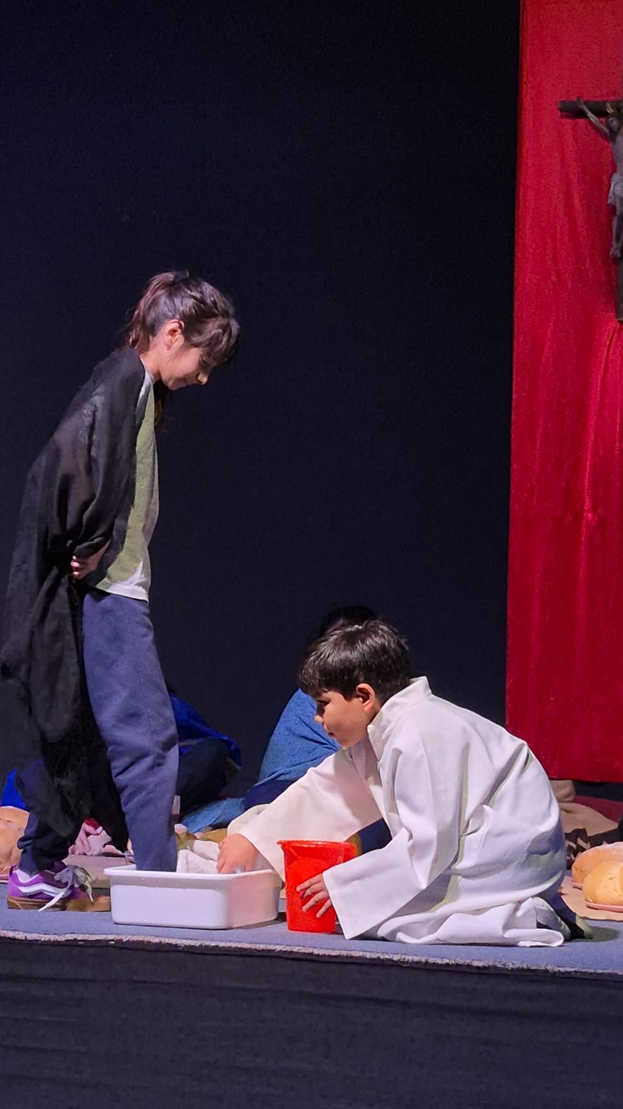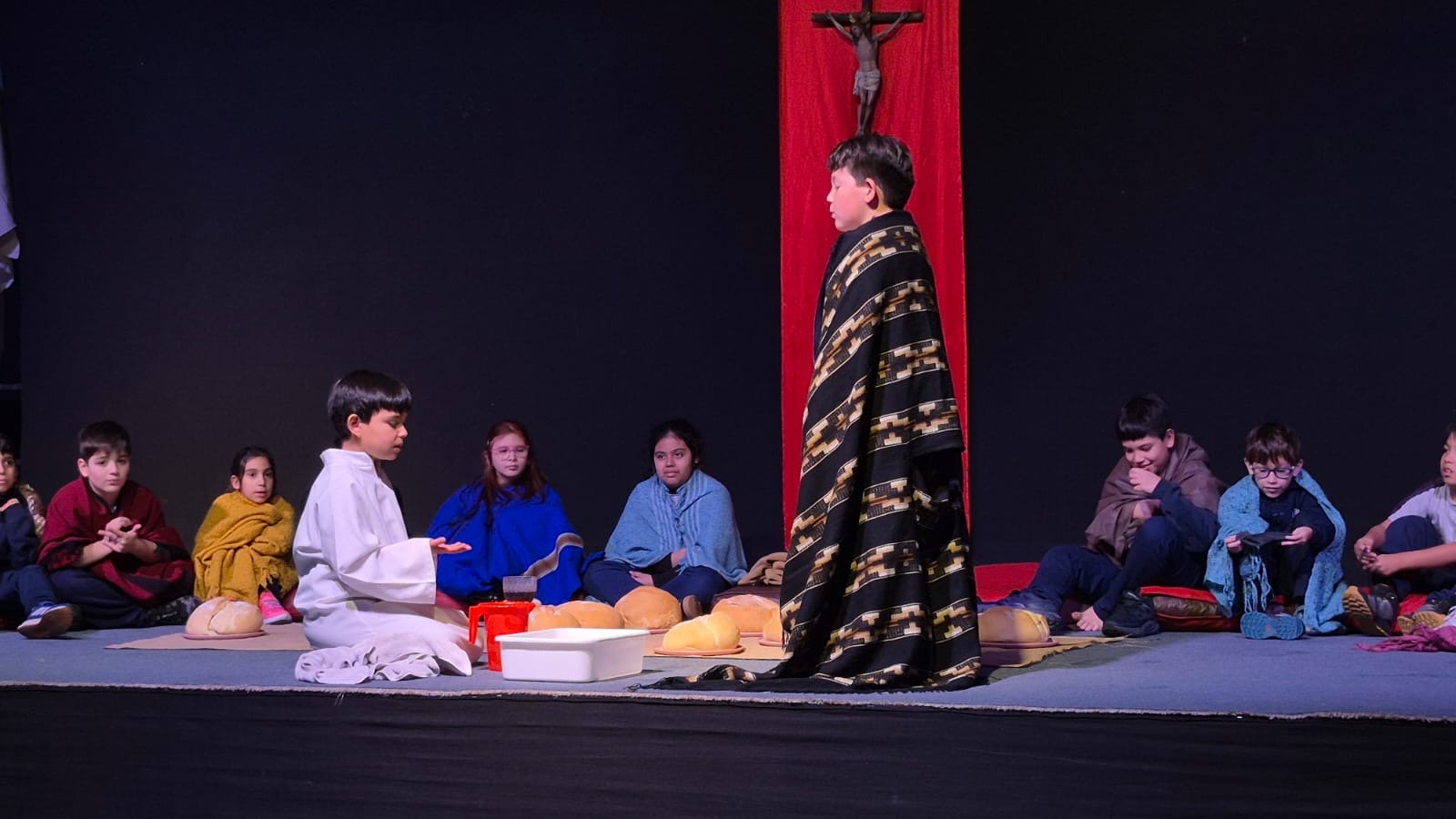 También los estudiantes de quinto grado, junto con sus docentes, llevaron adelante la recreación de la Última Cena. A través de esta representación, se recordó el momento en que Jesús instauró la Eucaristía, el sacramento del amor, y su mandamiento de amar a los demás.