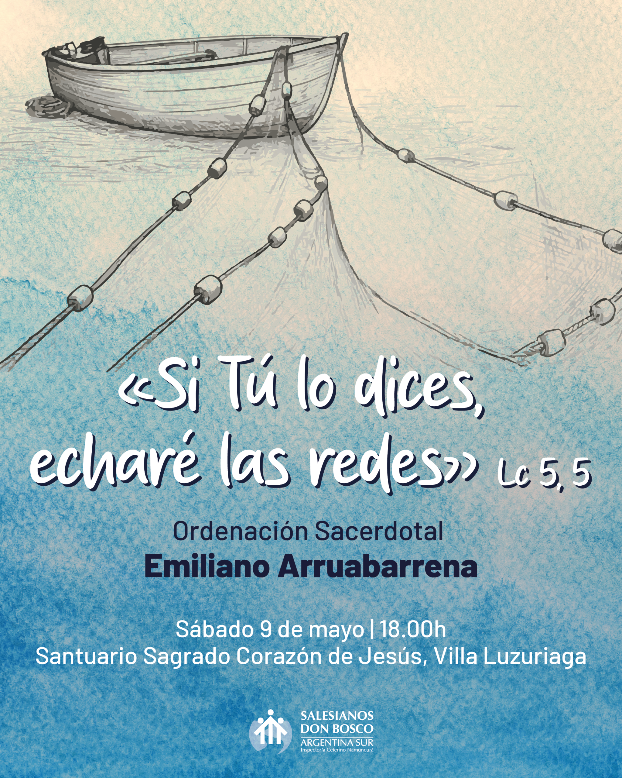 La Inspectoría de Argentina Sur vive con mucha alegría este tiempo pascual porque el joven salesiano Emiliano Nahuel Arruabarrena será ordenado sacerdote, bajo el lema “Si Tú lo dices, echaré las redes” (Lc. 5, 5).