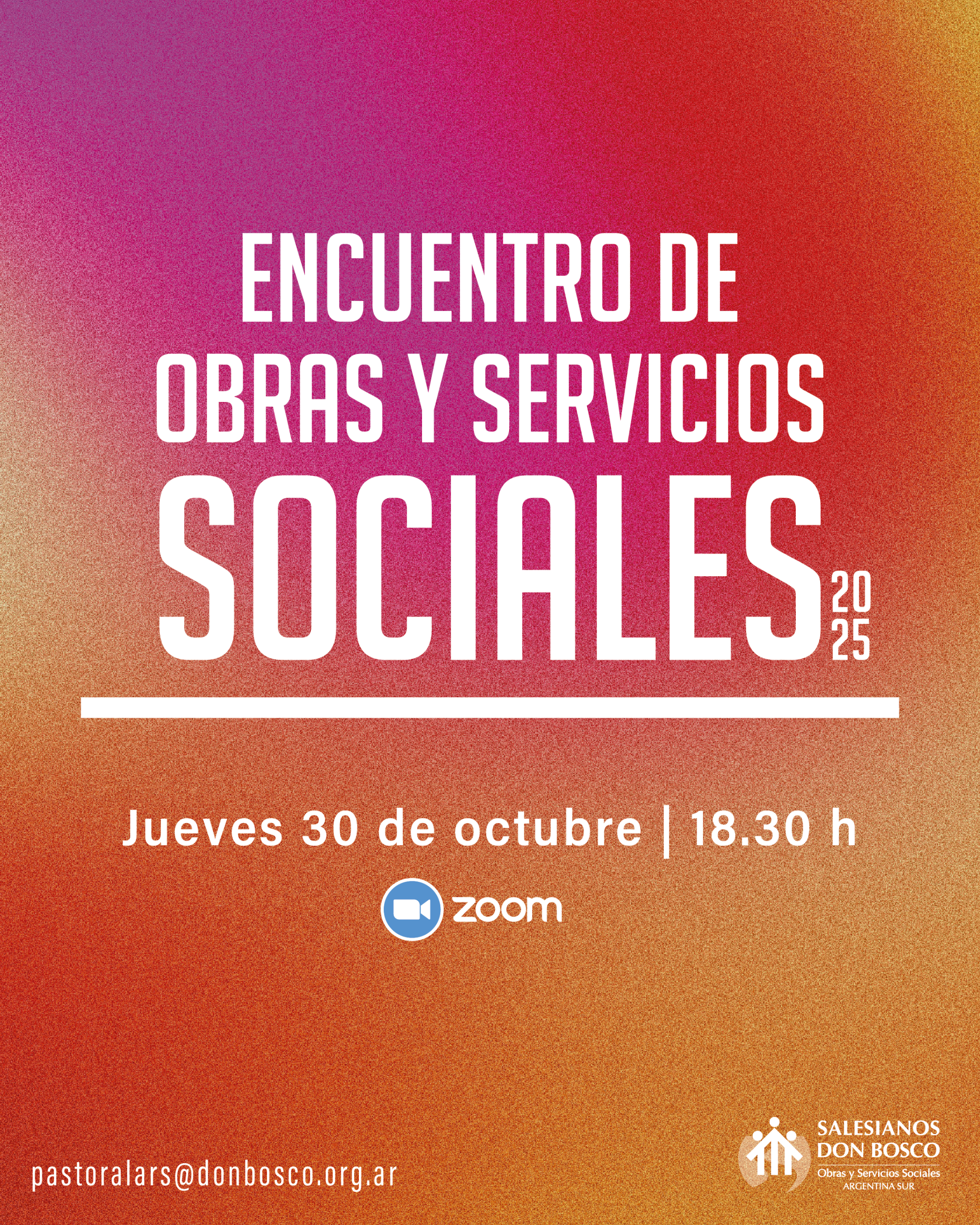 El Equipo de Obras y Servicios para Jóvenes en Situación de Vulnerabilidad y Exclusión invita a participar del Encuentro de Obras y Servicios Sociales 2025. Como cada año, este encuentro está destinado a los referentes del campo social de las casas salesianas de la Inspectoría Argentina Sur (ARS) y busca fomentar la formación, la reflexión y el intercambio de experiencias y caminos llevados adelante en nuestras obras.