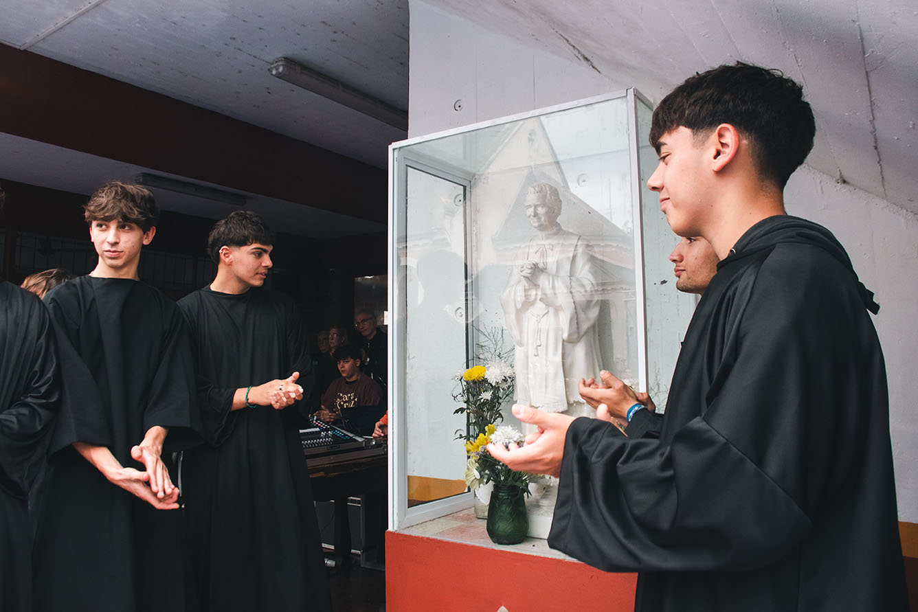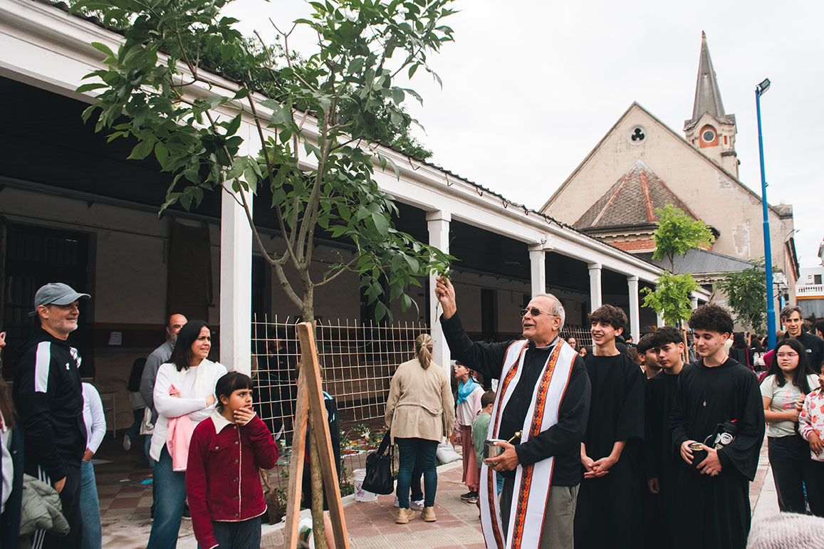 Para finalizar, el P. Francisco De Rito, junto a jóvenes del MJS que representaban a los misioneros, realizaron la bendición de cada árbol y de la nueva imagen de nuestro Padre, San Juan Bosco, que desde el sábado se encuentra acompañando la vida del patio.