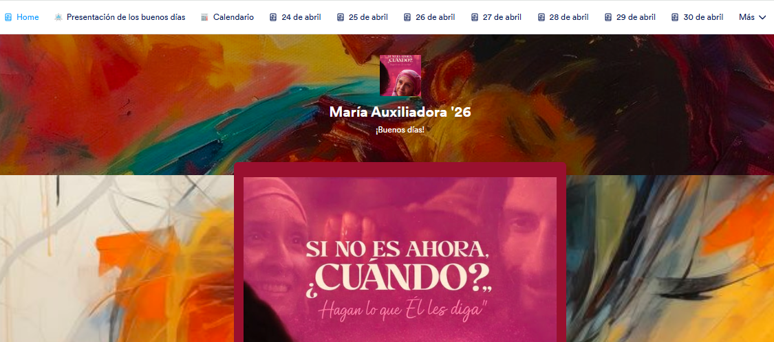 Se trata de una propuesta pensada para educadores, animadores y amigos del carisma con un Buenos Días para cada jornada del mes, desde el 24 de abril hasta el 24 de mayo: Evangelio del día, palabra clave, mensaje breve, intención concreta y oración. Se puede ingresar en https://www.jotform.com/app/260924417902659